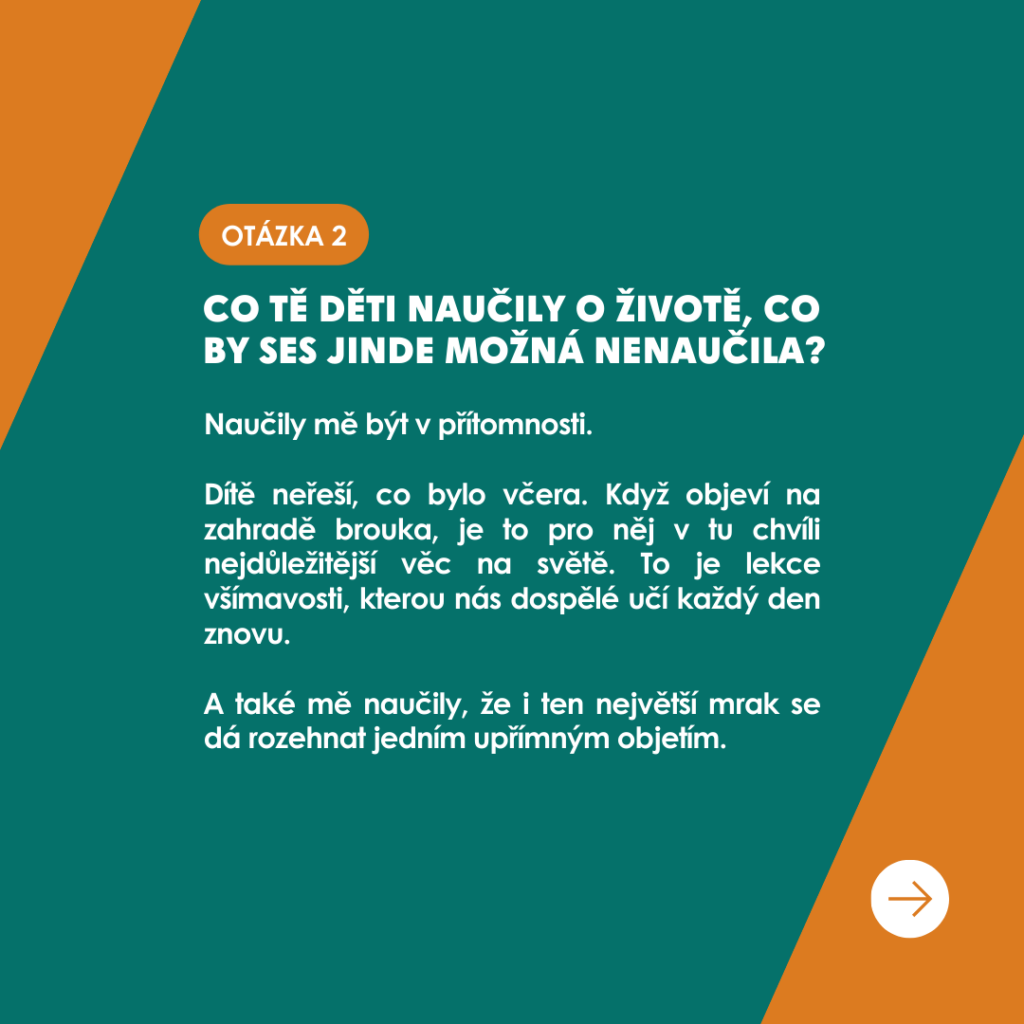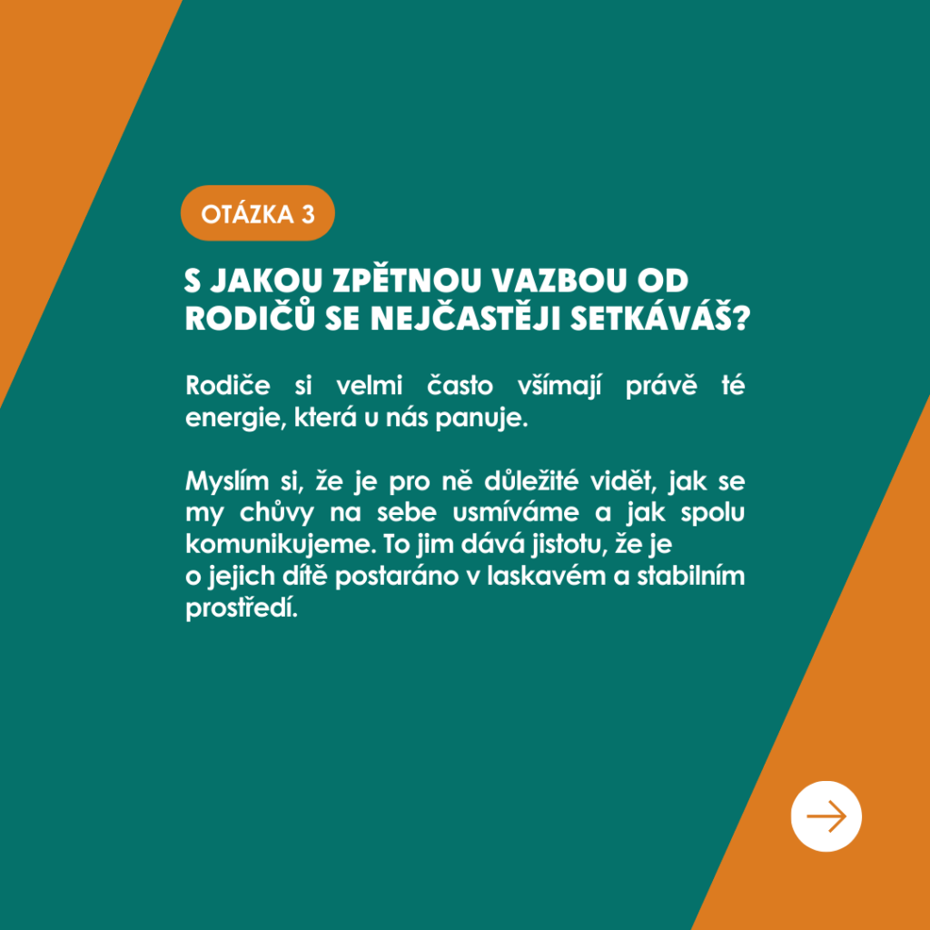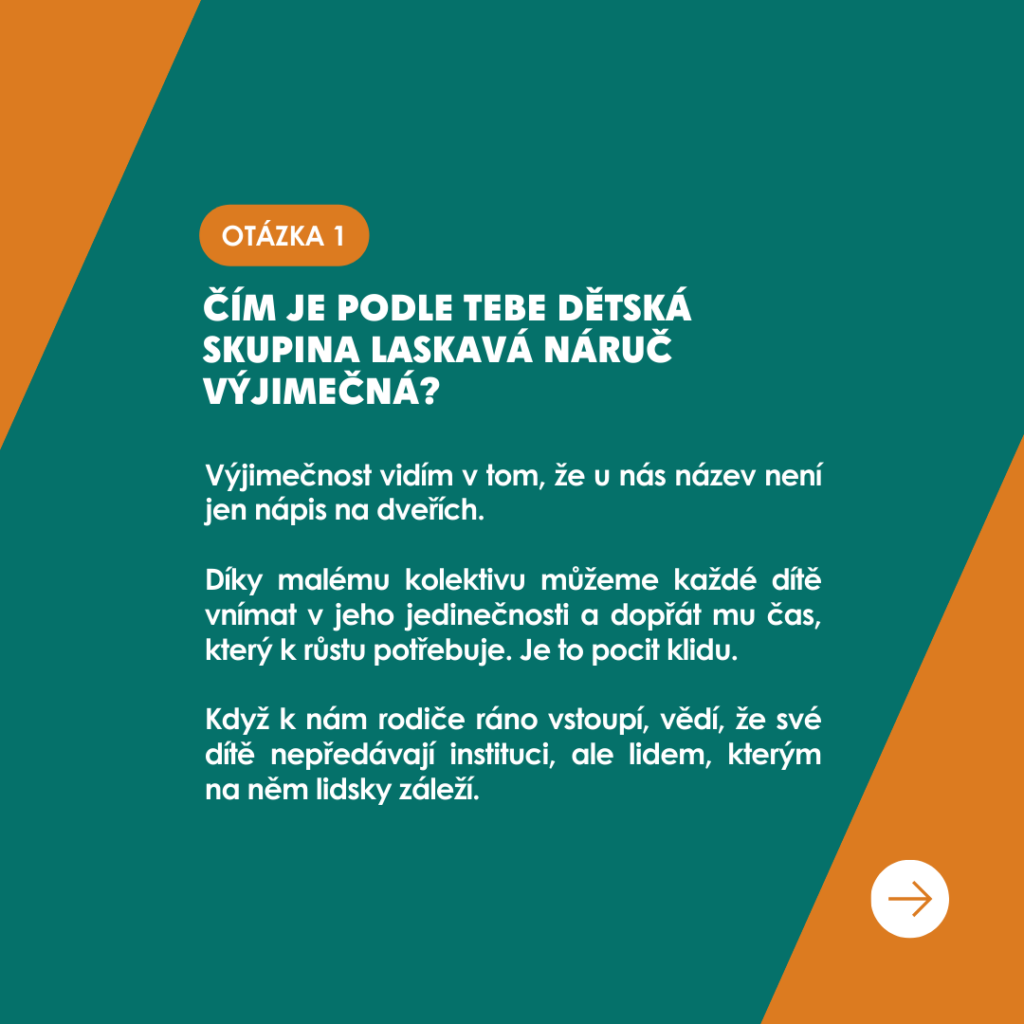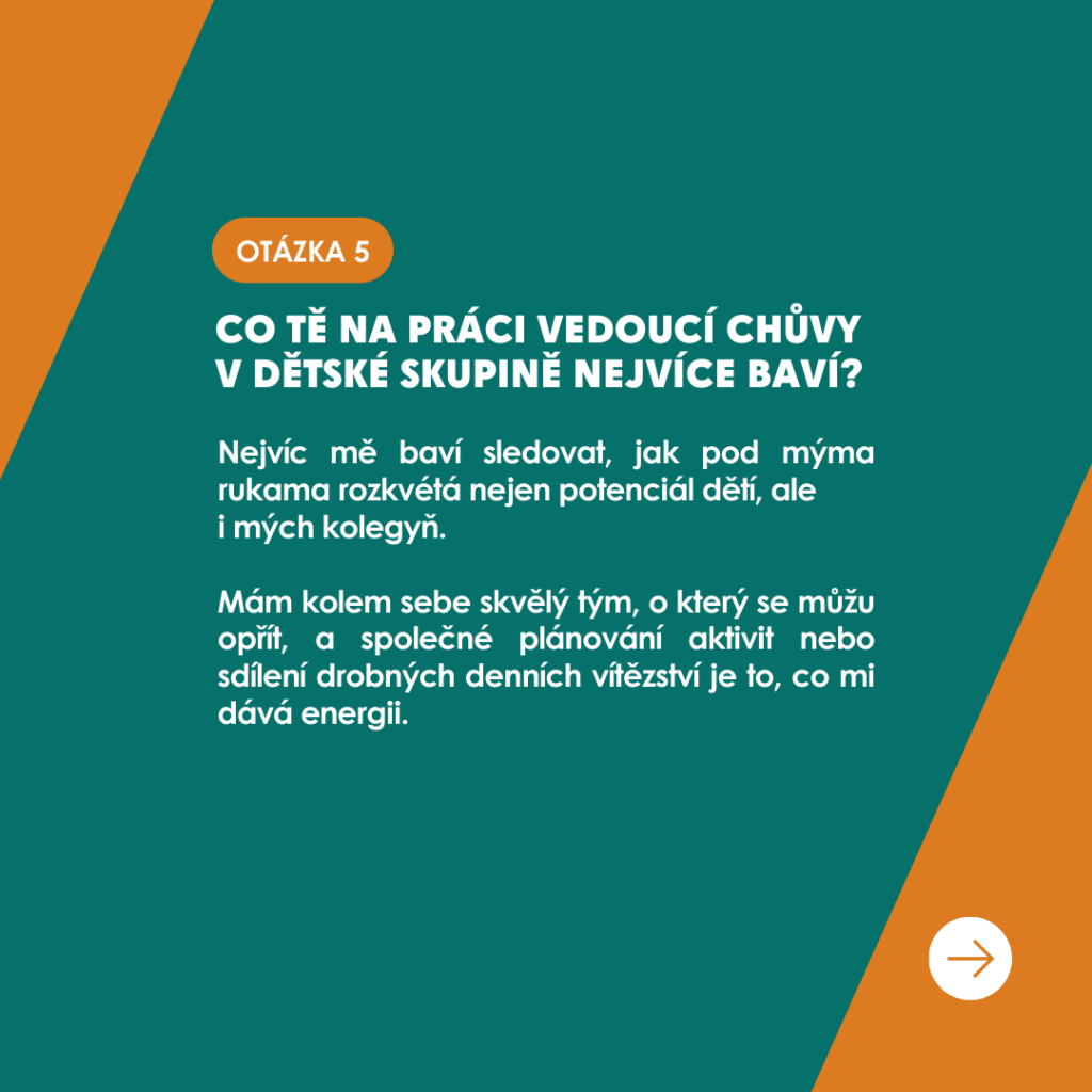 Dozvíte se, jak svou práci vnímá, jakou zpětnou vazbu má na skupinku od rodičů a jaké momenty jí tato práce přináší🛝. V rozhovoru najdete nejen milé a inspirativní odpovědi, ale i úsměvné situace z každodenního života v naší skupině🫶.